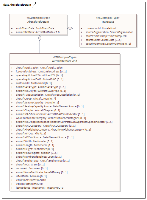 Reference data for an aircraft. Reference data for an airline. Reference data for an airport. AirportRunway AirportSystemSupport Reference data for AWOS (Automated Weather Observing System) sensors. The type of measurements this sensor can provide. Reference data for a customer. Reference data for a handler contract. Reference data for a handler. Reference data for IataAircraftTypeRefDataIn. Reference data for IcaoAircraftTypeRefDataIn.AircraftRefDataIn